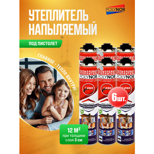 Утеплитель напыляемый в баллонах Полинор, пена утеплитель - 6 шт.