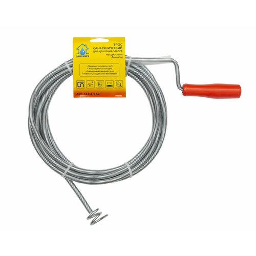 Трос сантехнический для удаления засоров в трубах диаметром до 100мм длиной до 5 метров. Домочист 51311-9-50