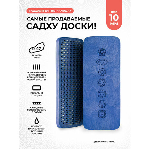 Доска Садху / Доска с гвоздями / Доска для йоги / Будда / Синий / шаг 8 мм