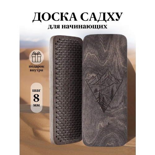 Доска Садху / Доска с гвоздями / Доска для йоги / Горы / коричневый / шаг 8 мм