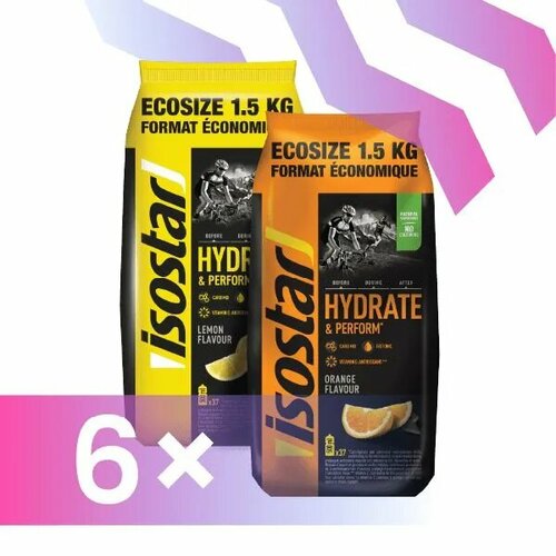 Изотонический напиток Isostar Hydrate & Perform Ecopack Апельсин и Лимон, 6 шт по 1,5 кг