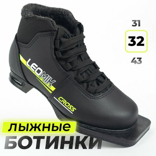 Ботинки лыжные детские Leomik Cross черные размер 32 для беговых прогулочных лыж крепление NN75