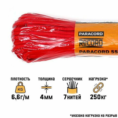 Паракорд 550, нейлон, красный, d - 4 мм, 30 м