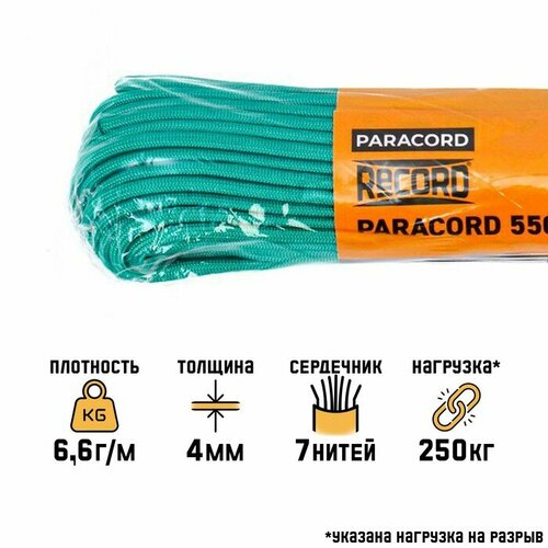 Паракорд 550, нейлон, изумрудный, d - 4 мм, 30 м