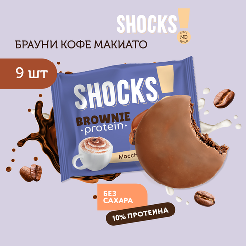 Протеиновое печенье без сахара Брауни без сахара SHOCKS! Кофе с молоком, бокс 9 шт, пп, сладости