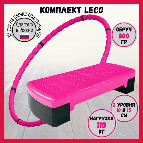 Степ платформа Leco 2-х уровневая (68 х 28), фуксия с обручем