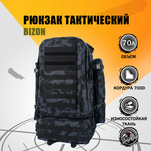 Рюкзак тактический BIZON 80 литров с дождевиком, Цвет: Чёрный мультикам