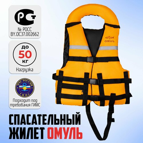 Сертифицированный спасательный жилет Омуль (OMUL) до 50 кг (ГОСТ Р 58108-2019)