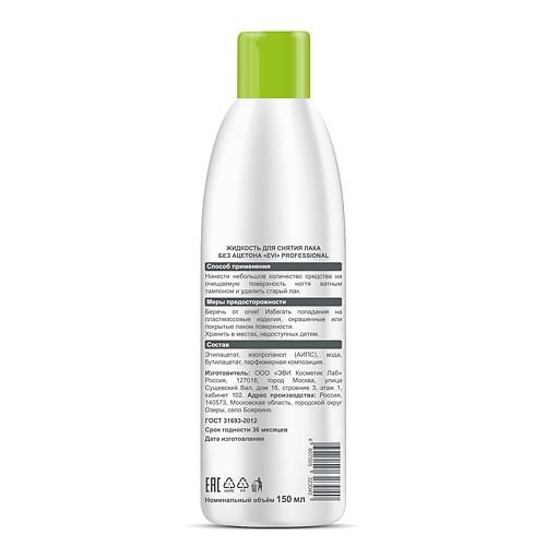 EVI PROFESSIONAL Жидкость для снятия лака без ацетона