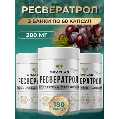 Ресвератрол 200 мг GraFLab, натуральный антиоксидант, 180 капсул GRAFLAB