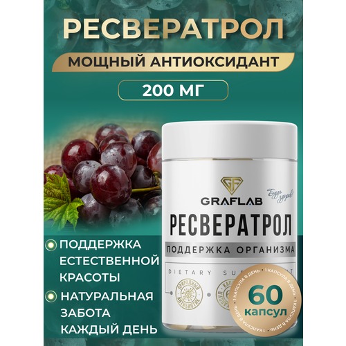 Ресвератрол GraFLab 200 мг, для поддержки организма, 60 капсул GRAFLAB