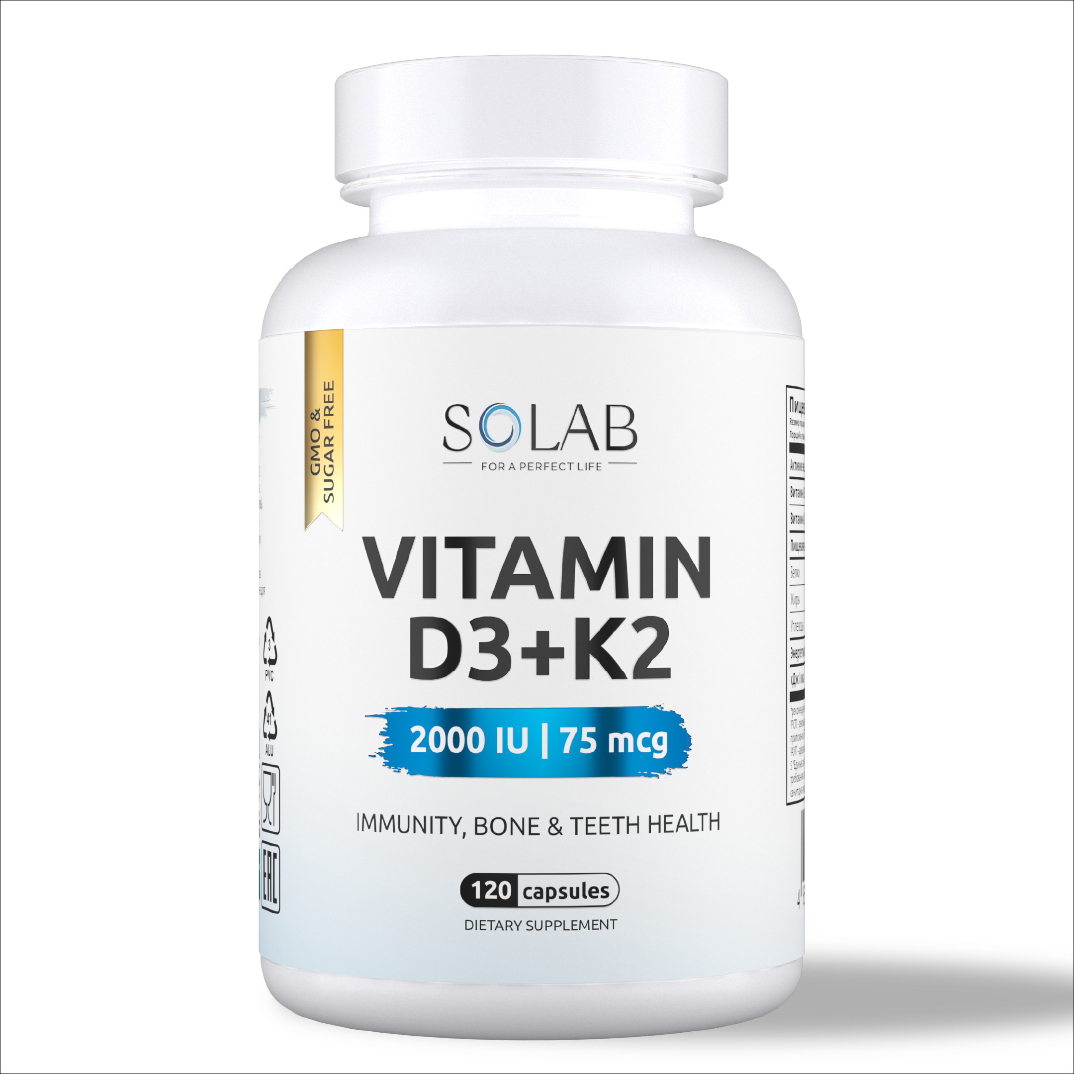 Витамины SOLAB Д3 2000 МЕ + К2, 120 капсул 600012035060