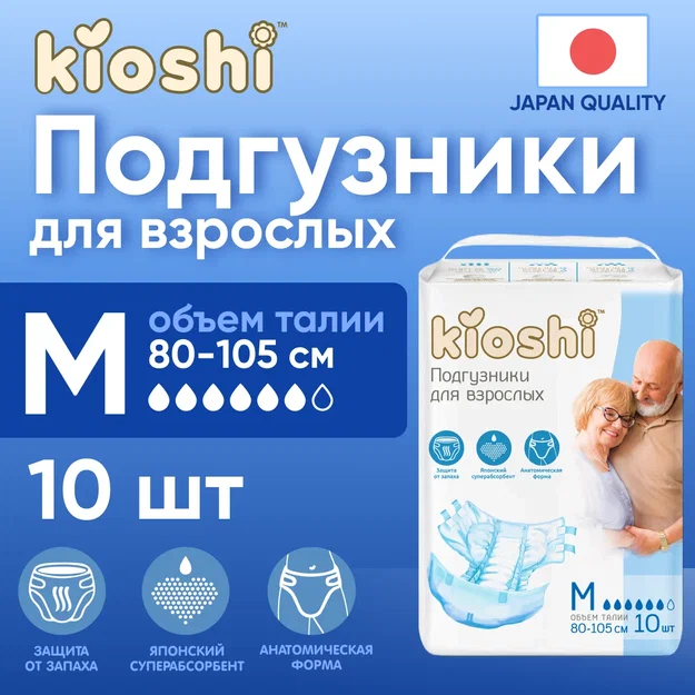 Подгузники для взрослых KIOSHI, размер M, 10шт 600013888152