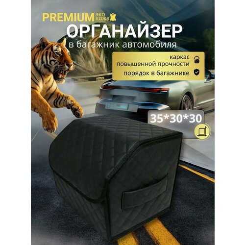 Органайзер для хранения для автомобиля/Органайзер в багажник/Автоаксессуры 35х30х30 рисунок квадрат строчка черная/саквояж 101810212400