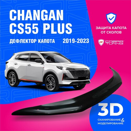 Дефлектор капота для автомобиля Changan CS55 PLUS (Чанган ЦС55 плюс) 2019-2024, UNI-S (Юни S) 2024 мухобойка, защита от сколов, Cobra Tuning 102873959455