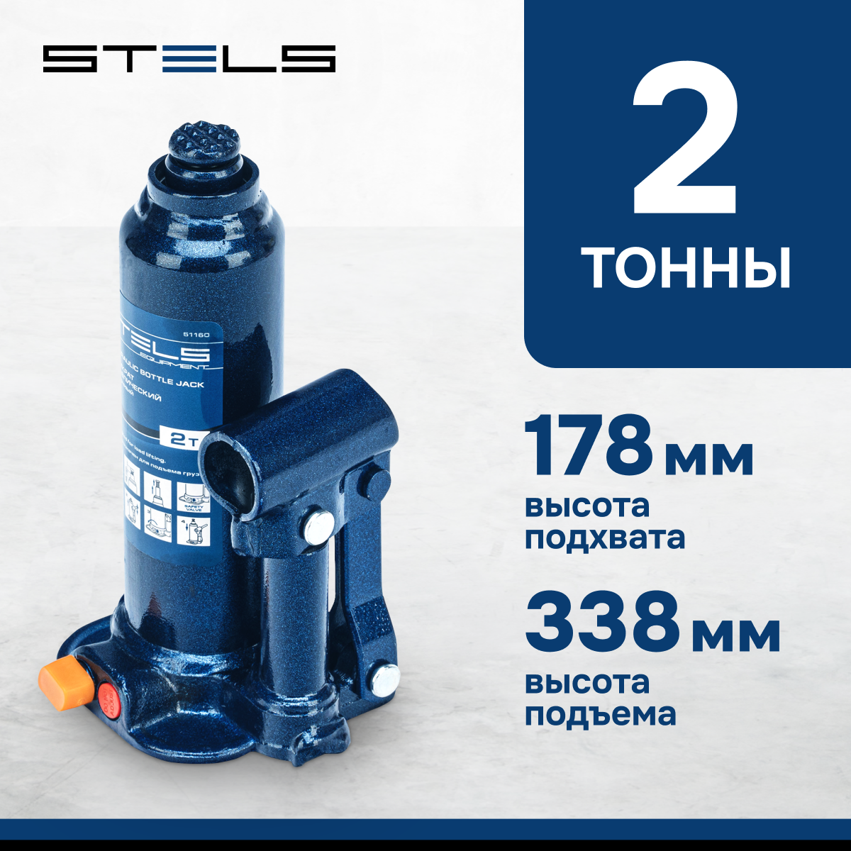 Домкрат STELS 51160 гидравлический бутылочный, 2 т, h подъема 178–338 мм 600000731207