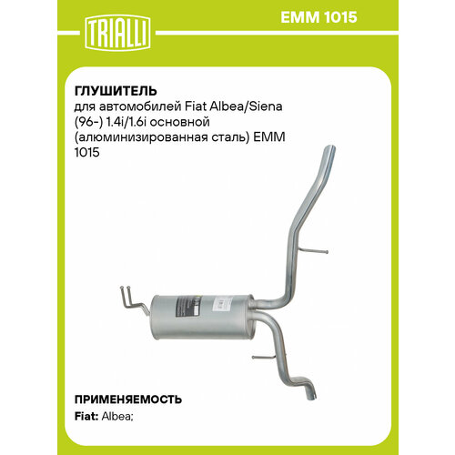 Глушитель для автомобилей Fiat Albea/Siena (96-) 1.4i/1.6i основной (алюминизированная сталь) EMM 1015 TRIALLI 101904631183