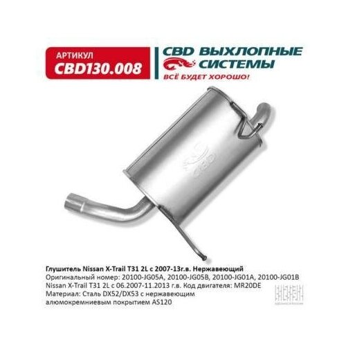 Глушитель Nissan X-Trail 2l С 06.2007-11.2013 Г. В. Код Двига Cbd Cbd130.008 CBD арт. CBD130.008 953729568