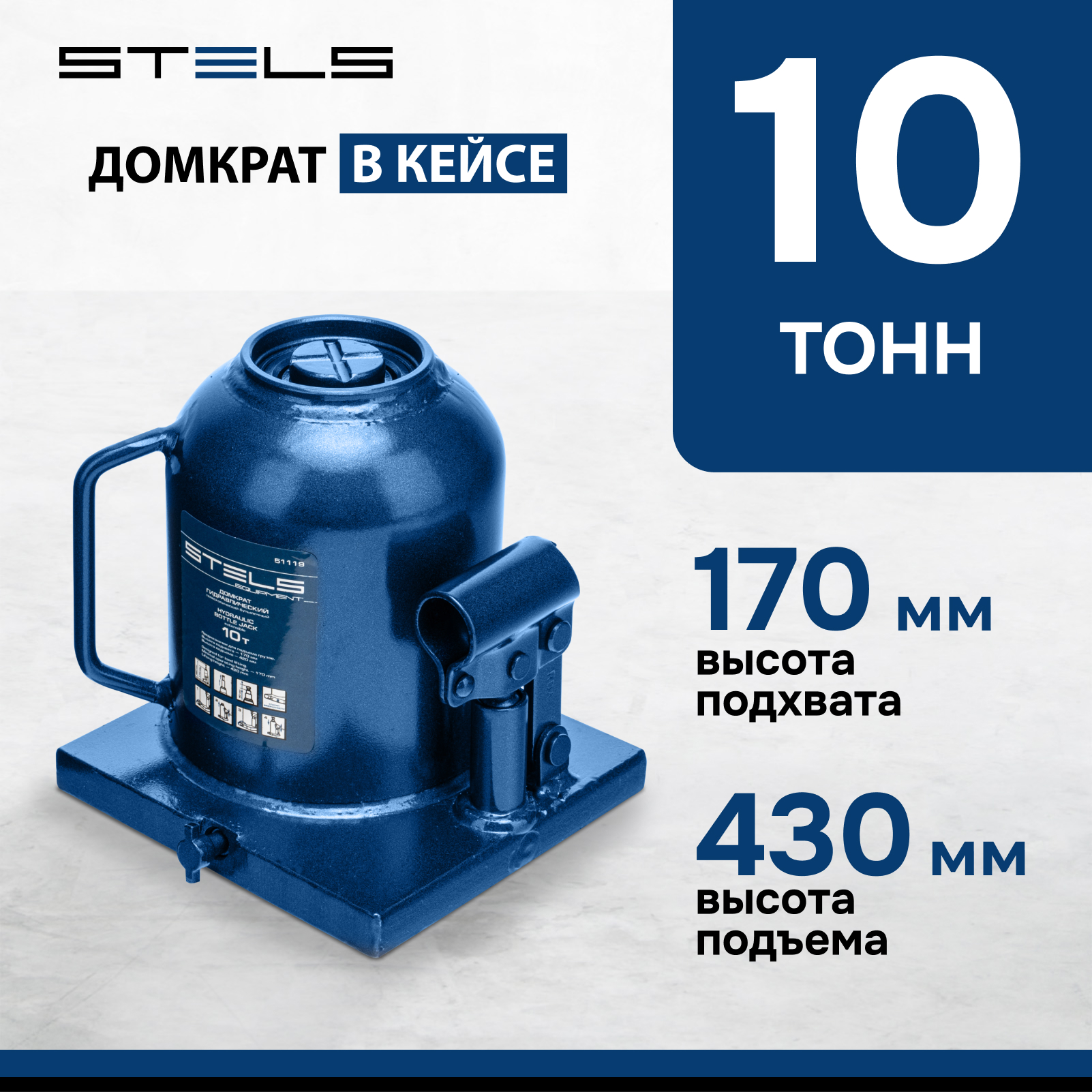 Домкрат STELS 51119 гидравлический бутылочный телескопический, 10 т, h подъема 170–430 мм