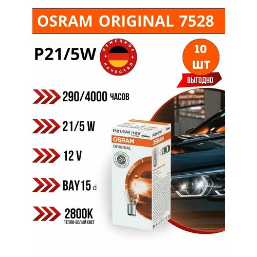Комплект автомобильных сигнальных ламп Osram P21W Classic 10шт 7506 103687933165