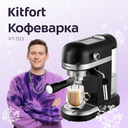Кофеварка рожковая Kitfort KT-765, серебристый/черный