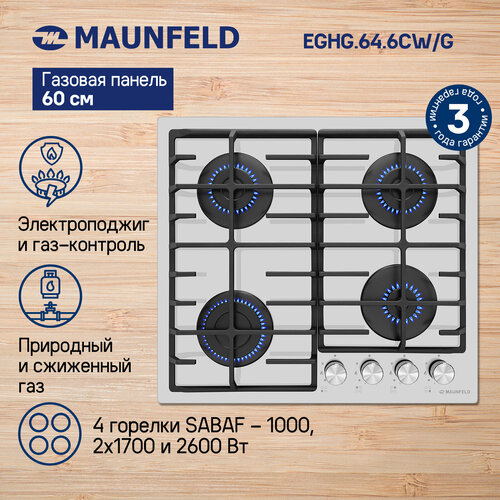 Газовая варочная панель MAUNFELD EGHG.64.6CW/G, белый