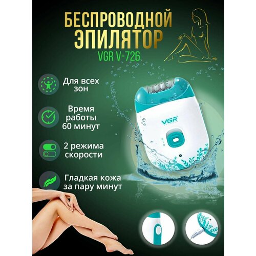 VGR Эпилятор беспроводной V-726 / Эпилятор женский / Электроэпилятор / Электроэпилятор для женщин
