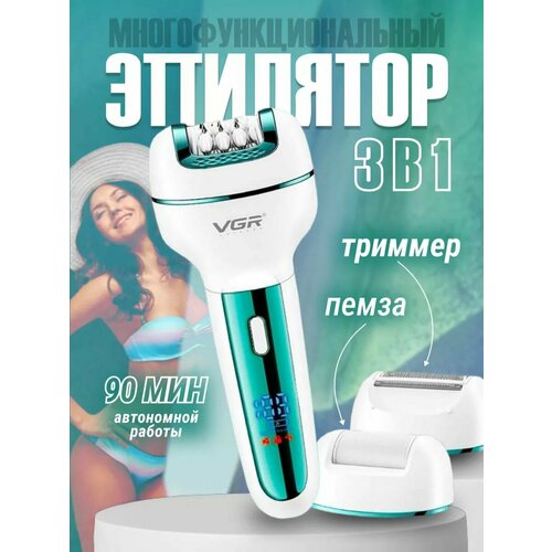 Эпилятор женский 3в1 VGR V0728 / Бритва женская / Щетка пилинг / Электрическая пемза / Депилятор