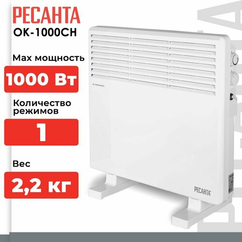 Конвектор РЕСАНТА ОК-1000СН, CN, 1 кВт, 15 м², ножки в комплекте