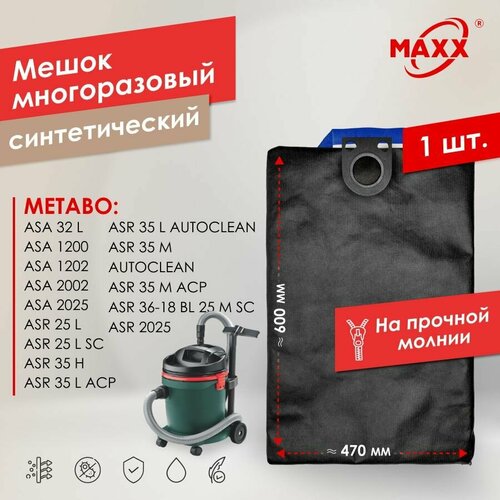 Мешок - пылесборник PRO многоразовый на молнии для пылесоса METABO ASR 2025, ASA 32 L, ASR 25 L, ASR 35 L