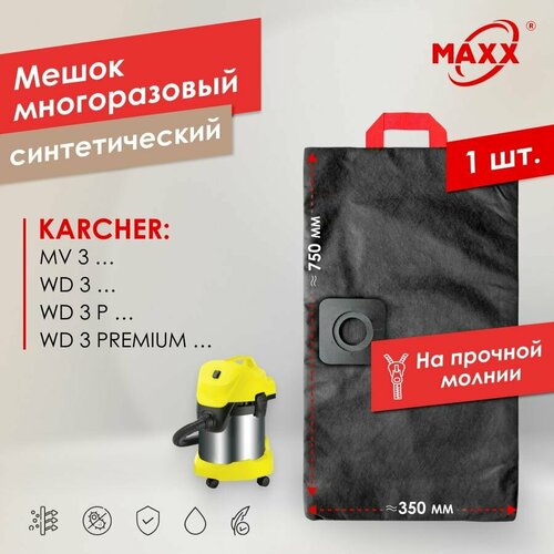 Мешок - пылесборник PRO многоразовый на молнии для пылесоса KARCHER WD 3, PREMIUM, P 6.959-130.0, MV 3