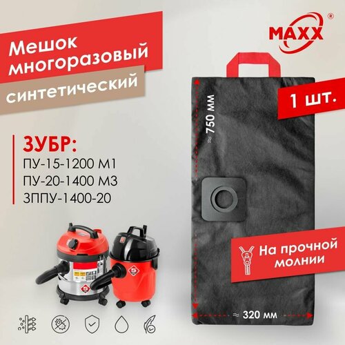 Мешок - пылесборник PRO многоразовый на молнии для пылесоса ЗУБР ПУ-15-1200 М1, ПУ-20-1400 М3 серия мастер, ЗППУ-1400-20