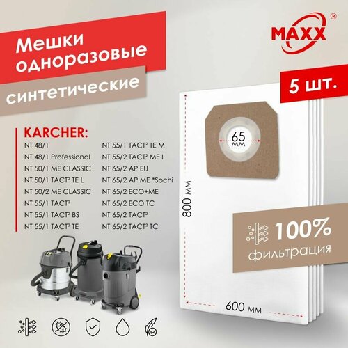Мешок - пылесборник PRO 5 шт. для пылесоса Karcher NT 48/1, 50/1, 55/1, 65/2