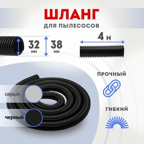 Шланг для пылесоса 32х38 мм 4 метра универсальный гофрированный