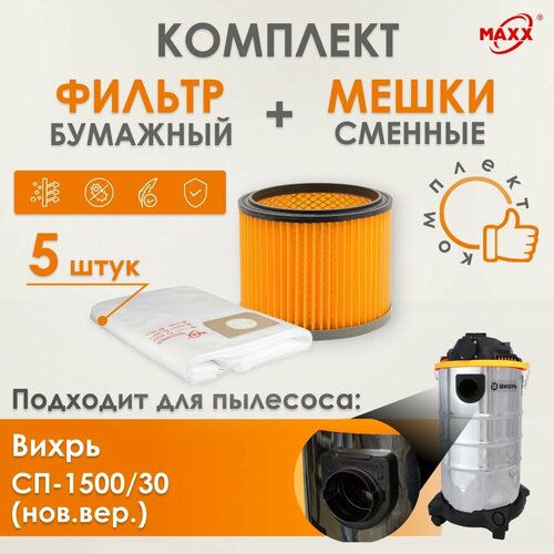 Мешки MAXX одноразовые, фильтр для пылесоса Вихрь СП-1500/30 (новая версия)