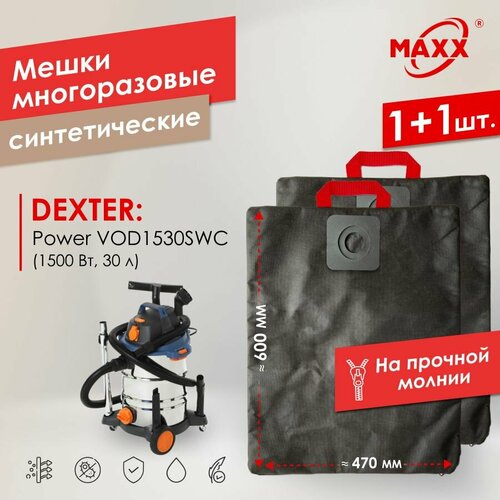 Мешок - пылесборник PRO многоразовый на молнии 2 шт. для Dexter Power VOD1530SWC 30 л, Dexter 30 л 1500 Вт
