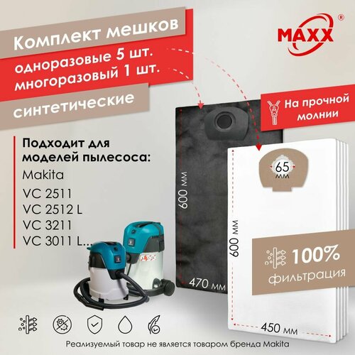 Пылесборники сменные PRO 5шт, мешок многоразовый для пылесоса MAKITA VC 2512, VC 3011, VC 3211, P-72899, P-70297