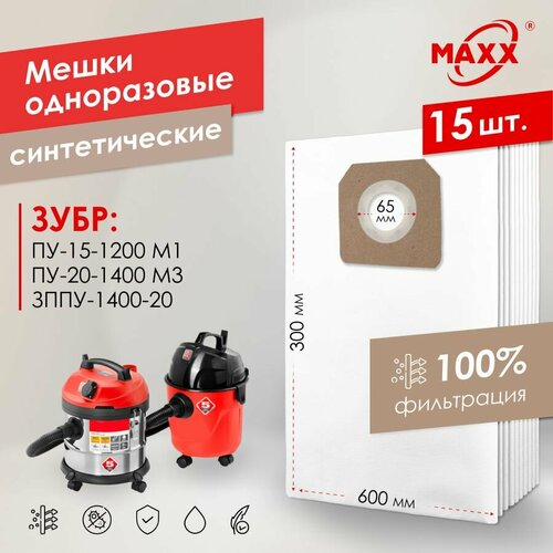 Мешок - пылесборник PRO 15 шт. для пылесоса ЗУБР ПУ-15-1200 М1, ПУ-20-1400 М3 серия мастер, ЗППУ-1400-20