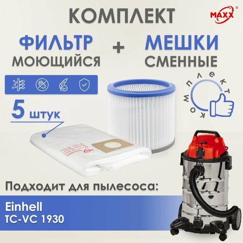 Мешки MAXX одноразовые, фильтр моющийся для пылесоса Einhell TC-VC 1930