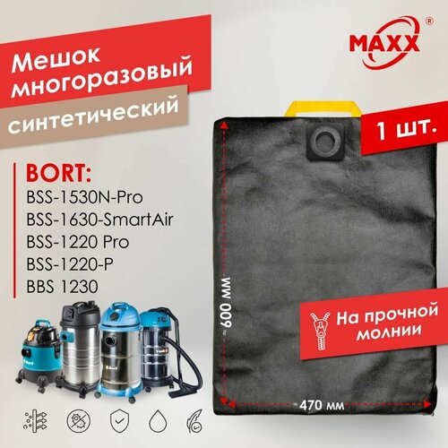 Мешок - пылесборник PRO многоразовый на молнии для пылесосов Bort BSS-1220-P,1220-Pro, 1230, 1530N-Pro, 1630-SmartAir
