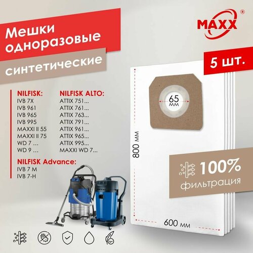 Мешок - пылесборник PRO 5 шт. для пылесоса Nilfisk Alto MAXXI WD 7, ATTIX 9