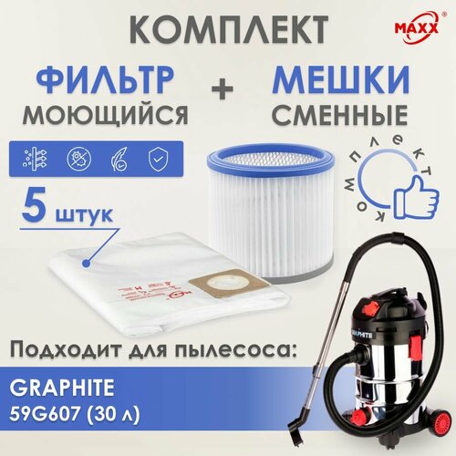 Мешки MAXX одноразовые, фильтр моющийся для пылесоса Graphite 59G607 1500Вт, 30л