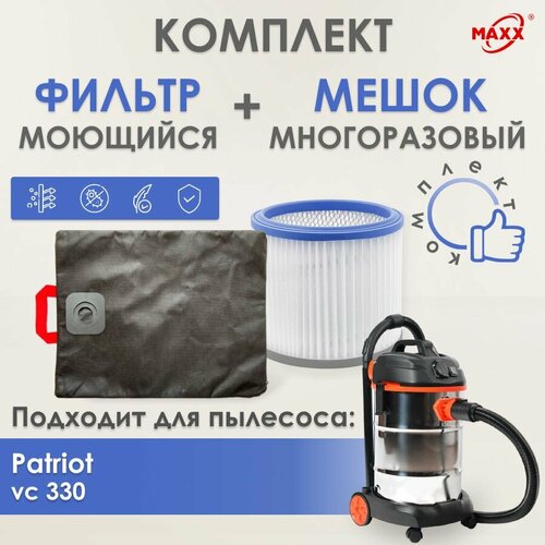 Мешок MAXX многоразовый, фильтр моющийся для пылесоса Patriot vc 330