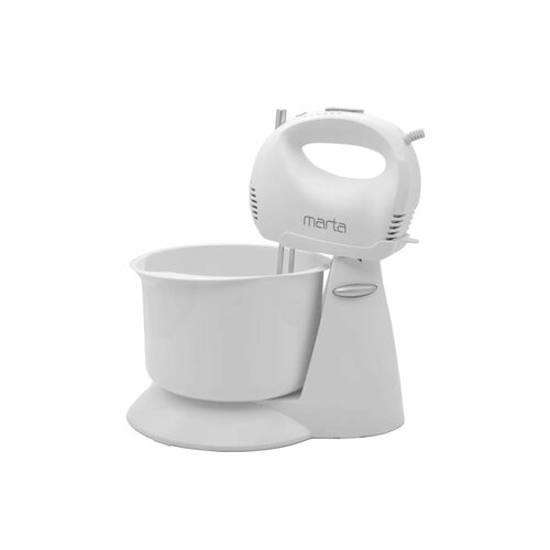 Ручной миксер MARTA, мощность 800Вт, 5 скоростей, белый/стальной