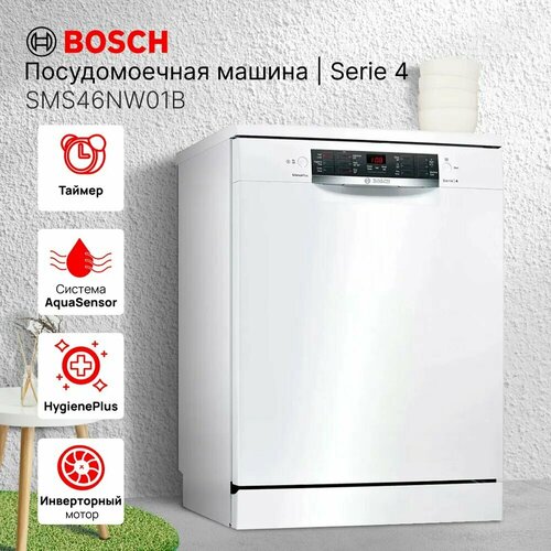 Посудомоечная машина Bosch Serie 4 SMS46NW01B, кол-во комплектов - 13, белая, 60 см
