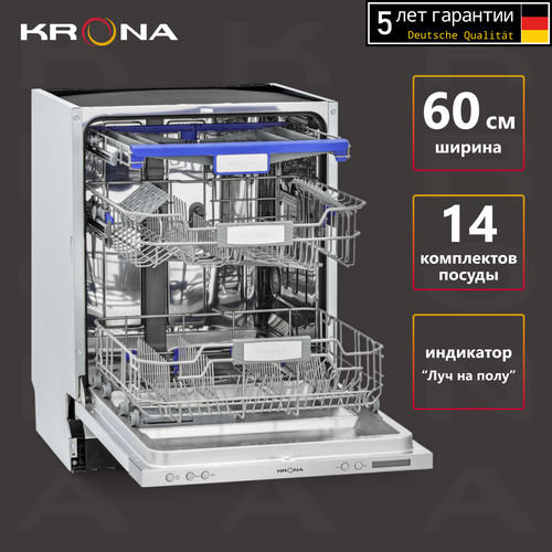 Встраиваемая посудомоечная машина с лучом на полу и авто-открыванием Weissgauff BDW 6140 Ultra Real Autoopen Infolight
