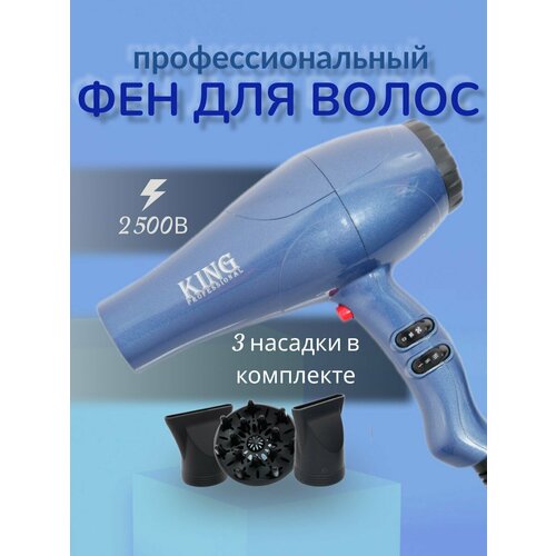 Профессиональный салонный Фен для волос/уход за волосами/для укладки и сушки волос/насадка концентратор, диффузор/с функцией ионизации/домашний/синий