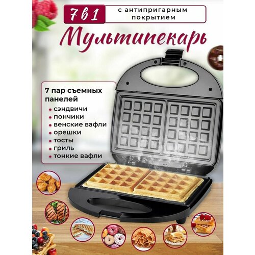 Мультипекарь со сменными панелями 7 штук (орешки, сэндвичи, вафли, пончики, печенье "улыбка") с антипригарным покрытием