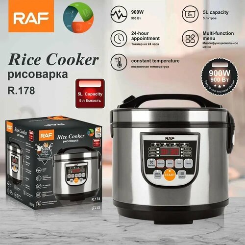 Электрическая мультиварка/пароварка/рисоварка RAF 5 литров, черный