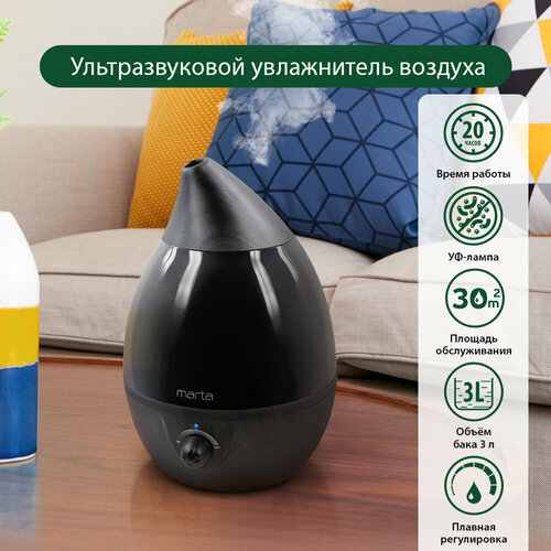 Увлажнитель воздуха с антивирусной УФ-лампой MARTA MT-HF4700A черный/хром
